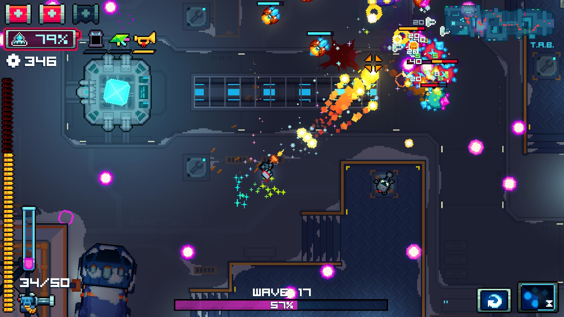 Minigunner is an action roguelike where you play as a hired mercenary and defend a mining outpost from waves of squishy slimes that emerge from below.